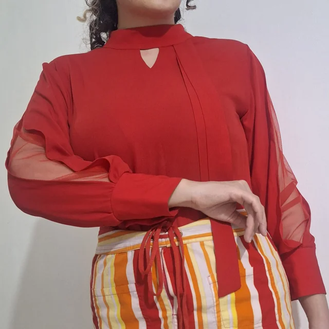 این شومیز زیبا و شیک از جنس کرپ و حریر میباشد.